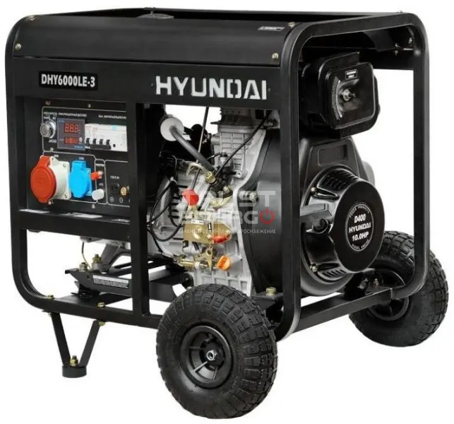 Дизельный генератор Hyundai DHY 6000LE-3 номинальной мощностью 5 кВт с двигателем Hyundai - отличный электроагрегат демонстрирующий уверенный приём нагрузки как резервный источник питания, так и основной.