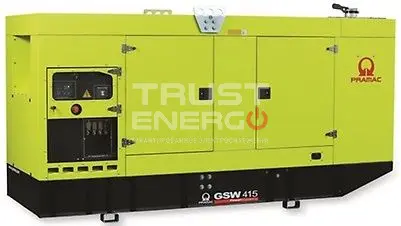 Дизельный генератор Pramac GSW 415 P В кожухе с АВР номинальной мощностью 285 кВт с двигателем Perkins 2206A-E13TAG2 - отличный электроагрегат демонстрирующий уверенный приём нагрузки как резервный источник питания, так и основной.